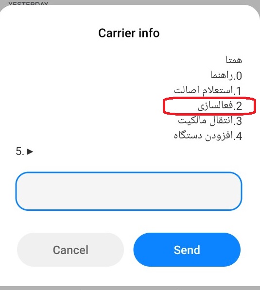 در این مرحله لازم است تا با ارسال عدد ۲، گزینه «فعالسازی» را انتخاب کنید.